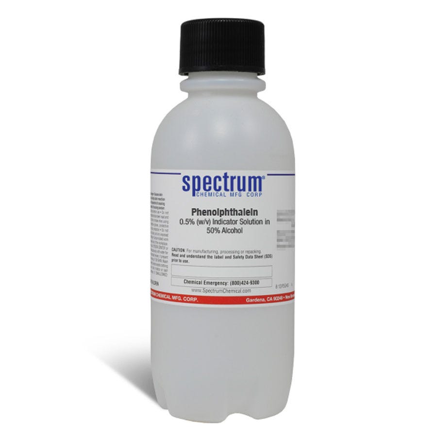 酚酞,0.5% (w/v)指示剂溶液在50%酒精中,APHA - 作为APHA认证的溶液,该产品符合ASTM D1209标准,用于水和废水处理设施中确定溶解和颗粒物质的浓度。Spectrum Chemical制造的APHA级产品满足最严格的监管标准,以确保质量和纯度。