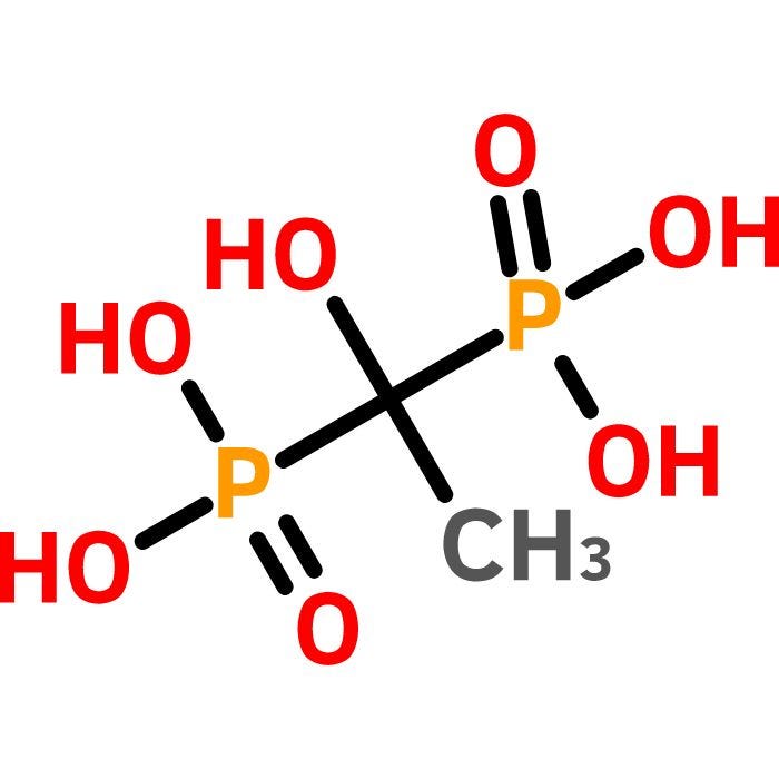 依替膦酸,也被称为1-羟基乙烷-1,1-二磷酸,用作双膦酸盐治疗骨质疏松症。Spectrum提供的未分级产品表明其等级适合一般工业使用或研究目的,通常不适合人类消费或治疗使用。同义词:1-羟基乙烷-1,1-二磷酸;1-羟乙基亚磷酸。