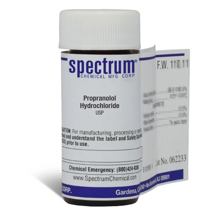 Propranolol Hydrochloride, USP 是一种交感神经非选择性 β 受体阻滞剂,用于治疗焦虑、高血压和恐慌。所有 Spectrum Chemical USP 级产品均按照 21CFR 第 211 部分的现行良好生产规范 (cGMP) 在 FDA 注册和检验的设施中生产、包装和储存。