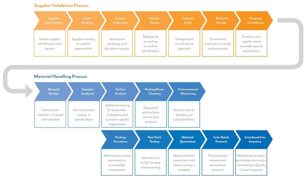 您的工艺的不同阶段有不同的需求,例如化学品类型、监管监督和产品数量。无论您需要几百克作为定制培养基配方的添加剂、几公吨用于下游纯化缓冲液和盐梯度,还是几百公斤用于最终肠外制剂的多药典赋形剂,我们的目标都是为特定预期用途提供合适的产品。我们明白没有两个客户或工艺是完全相同的,我们将与您合作,满足您的独特需求。