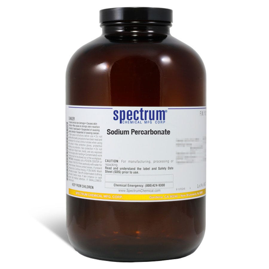 过碳酸钠是一种无色且吸湿的固体,以可溶性结晶形式存在。作为氧化剂使用,它存在于许多家用和洗衣产品中。与水混合时,它会溶解并产生过氧化氢,最终转化为水和氧气。它也用于有机合成,作为无水H202的来源。