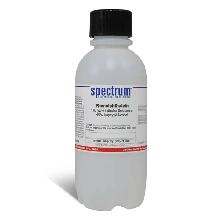 酚酞,1% (w/v) 指示剂溶液,溶于 95% 异丙醇中,常用作滴定剂,在酸性溶液中为无色,在碱性溶液中为粉红色。Spectrum Solutions 使用适合您产品的最高质量原材料。大多数原材料达到或超过美国化学会制定的规格。在适当的情况下,许多成品可追溯到 NIST 标准参考物质。制造、质量控制测试和包装都在 Spectrum 自己的设施中进行。所有生产批次的记录保存和样品保留可确保产品的一致性和完全可追溯性。
