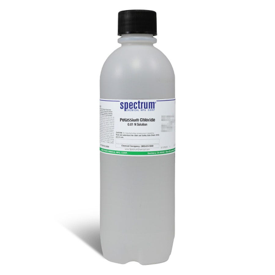 氯化钾,0.01 N溶液,用于电导率,APHA - 作为APHA认证溶液,此产品符合ASTM D1209标准,用于水和废水处理设施中确定溶解和颗粒物质的浓度。Spectrum Chemical制造的APHA等级产品满足最严格的监管标准,以质量和纯度。