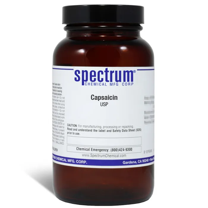 辣椒素,USP 用作鼻腔绝育、局部软膏和皮肤贴剂中的镇痛剂,以缓解疼痛。所有 Spectrum Chemical USP 产品均按照 21CFR 第 211 部分的现行良好生产规范 (cGMP) 在 FDA 注册和检验的设施中生产、包装和储存。