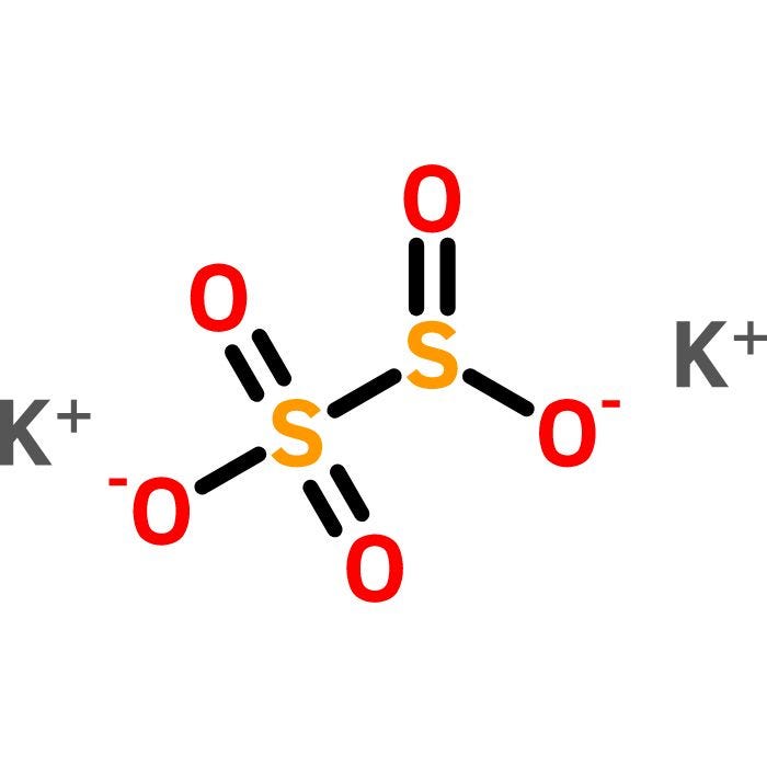 焦亚硫酸钾,晶体,NF。所有Spectrum化学NF级产品均按照当前良好生产规范(cGMP)进行制造、包装和储存。同义词:二钾焦亚硫酸盐;焦亚硫酸钾