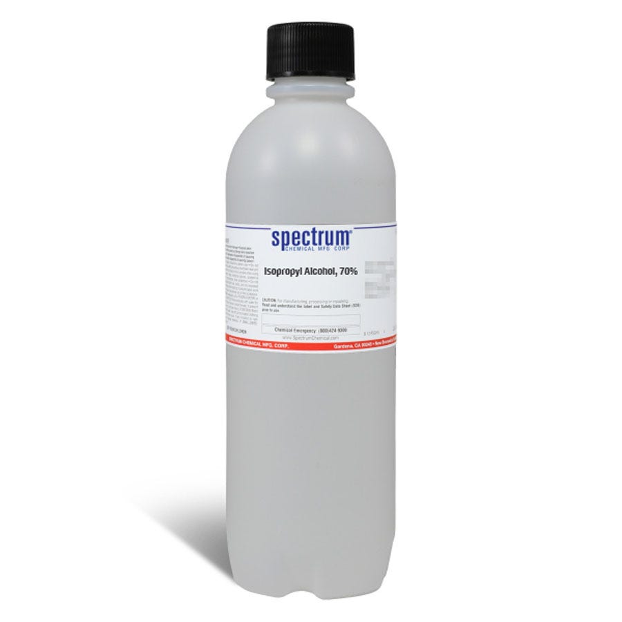 70%异丙醇是一种异丙醇和水的溶液。异丙醇有许多用途,包括用于消毒垫。Spectrum解决方案使用适合您产品的最高质量原材料。大多数原材料满足或超过美国化学学会制定的规格。在适当的情况下,许多成品可追溯至NIST标准参考材料。制造、质量控制测试和包装都在Spectrum自己的设施中进行。所有生产批次的记录保存和样品保留确保了产品的一致性和完全可追溯性。