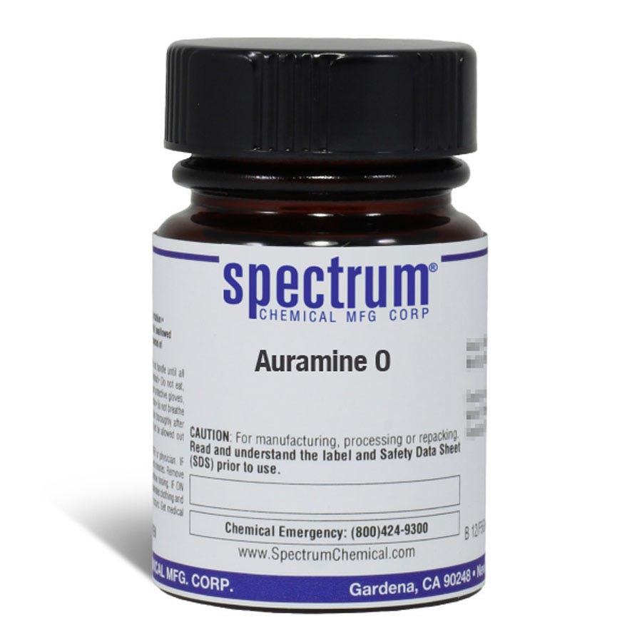 荧光素O,也称为碱性黄2或Pyocatanium aureum,是一种二芳基甲烷染料,用于染色抗酸细菌和作为荧光染料;它溶于水和乙醇。Spectrum提供的非分级产品表明其适合一般工业使用或研究目的,通常不适合人类消费或治疗用途。