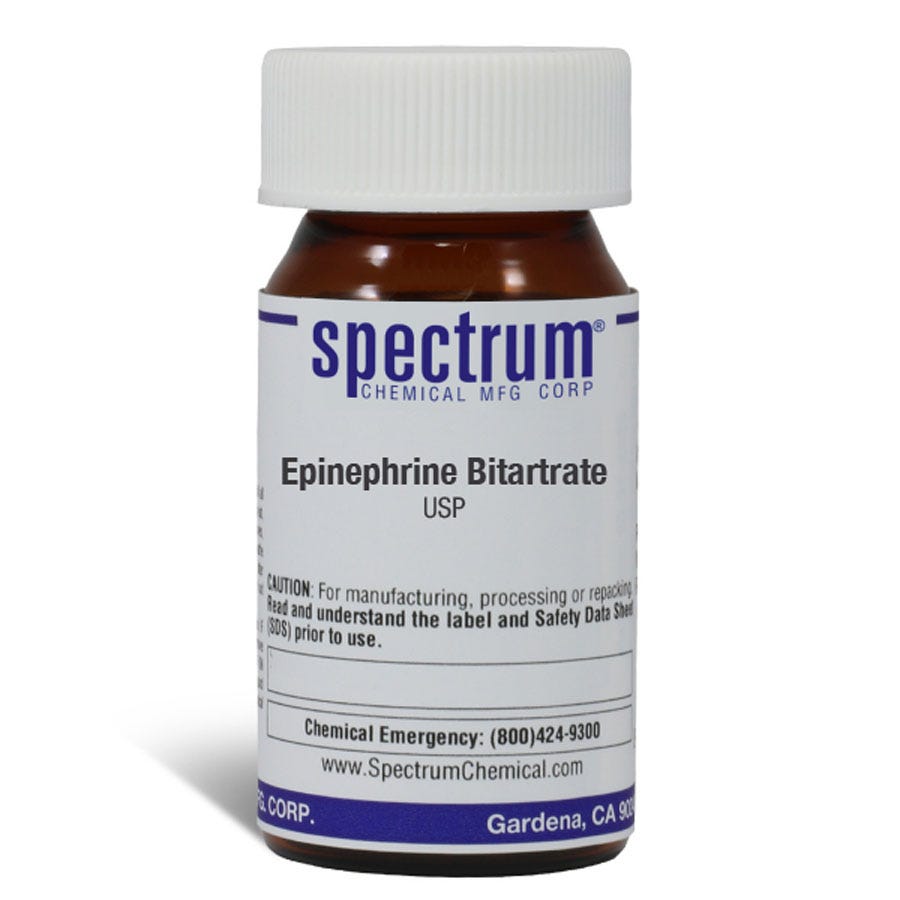 肾上腺素酒石酸盐,USP用于治疗危及生命的过敏反应,包括过敏性休克。所有Spectrum Chemical USP产品都是在FDA注册和检查的设施中按照21CFR第211部分的当前良好生产规范(cGMP)制造、包装和储存的。