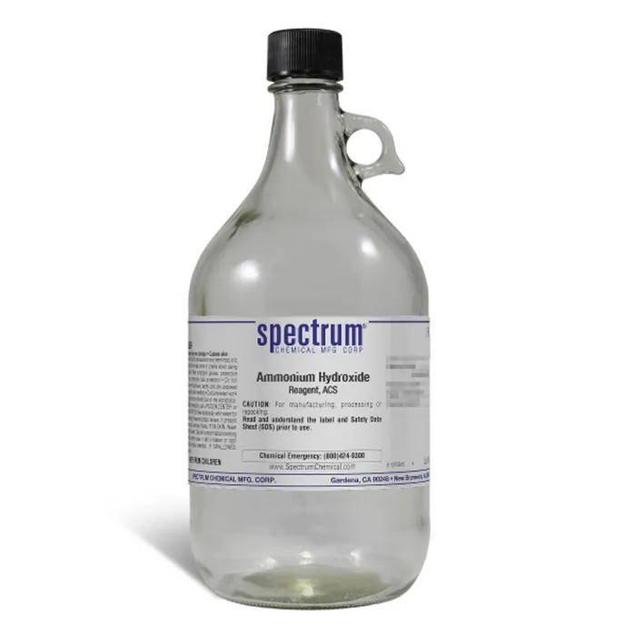 Ammonium Hydroxide, Reagent, ACS 是 Amonia 在水中的溶液。众所周知,阿氨水溶液在定性无机分析中用作络合剂和碱。在铜溶液中变成深蓝色。也用于溶解氧化银残留物,例如由 Tollens 试剂形成的残留物。它也常用于许多家用清洁剂中,例如窗户清洁配方。作为 ACS 级试剂,Spectrum Chemical 制造的氢氧化铵被用作其他物质分级的质量标准,并符合最严格的质量和纯度监管标准。