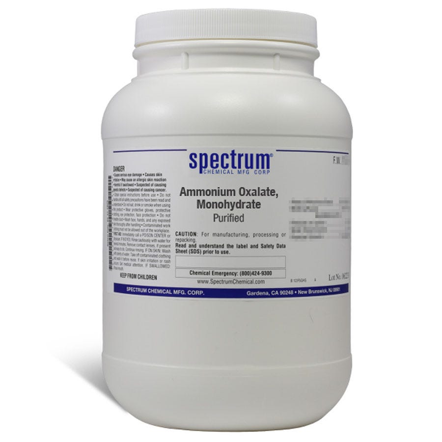 草酸铵一水合物,纯化是一种无味、无色且非挥发性的固体。它存在于鸟粪中,可以是某些类型肾结石的成分。