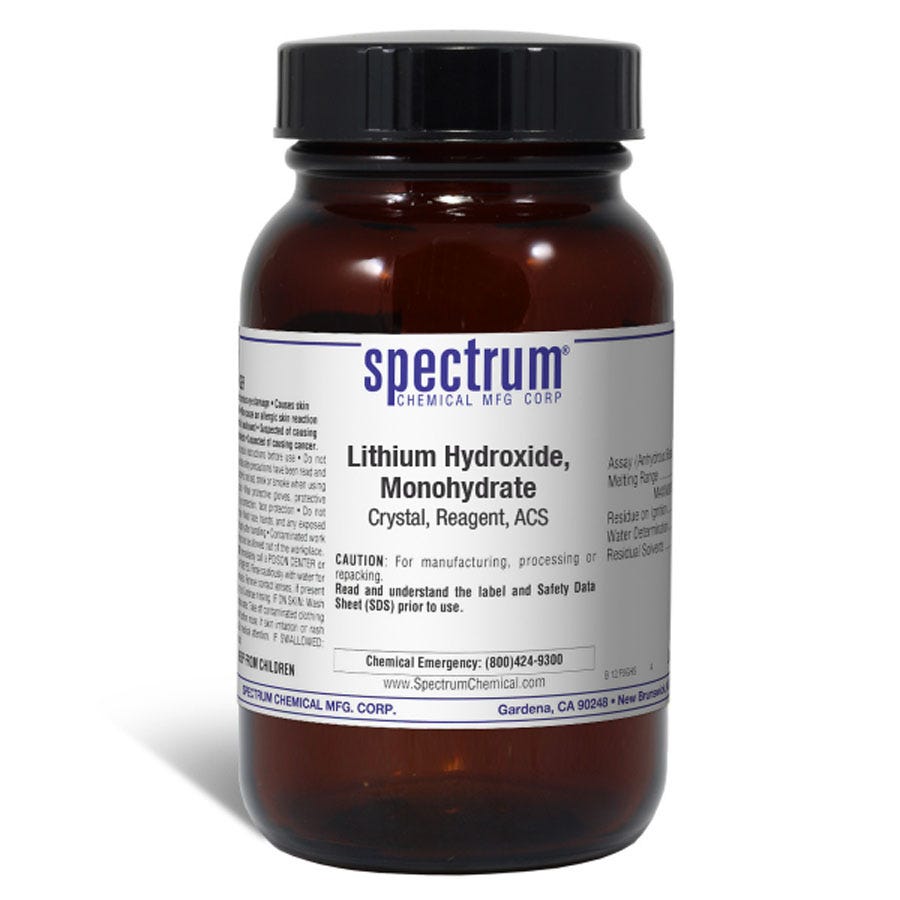 氢氧化锂,一水合物,晶体,试剂,ACS主要用于生产锂基润滑脂,如锂硬脂酸盐,这是一种通用的润滑脂,因为它对水的高抵抗力以及在高温和低温下的实用性。作为ACS级质量试剂,其化学规格是许多高纯度应用中使用的化学品的事实上的标准,并通常指定为实验室使用中可用的最高质量化学品。Spectrum Chemical生产的试剂级ACS产品满足最严格的监管标准,以确保质量和纯度。