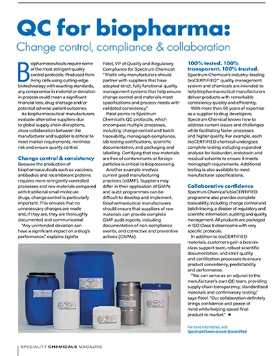 斯百全化学(上海)有限公司(Spectrum China Limited)成立于2005年,专注于为制剂生产提供药用辅料。斯百全化学为客户提供多样化的定制包装服务,以满足从处方筛选、中试到商业化生产等不同阶段的需求。此外,公司还能够协助客户进行制剂辅料的关联审评,确保符合中国国家药品监督管理局的相关法规要求。斯百全化学致力于提供高质量的产品与服务,确保客户能够选择到最优质的制剂辅料。